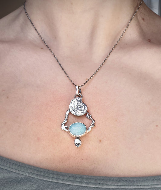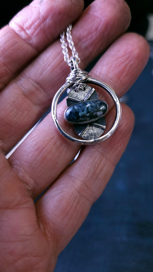 Collier serpent en argent fusionné avec labradorite – bijou symbolique, pièce unique