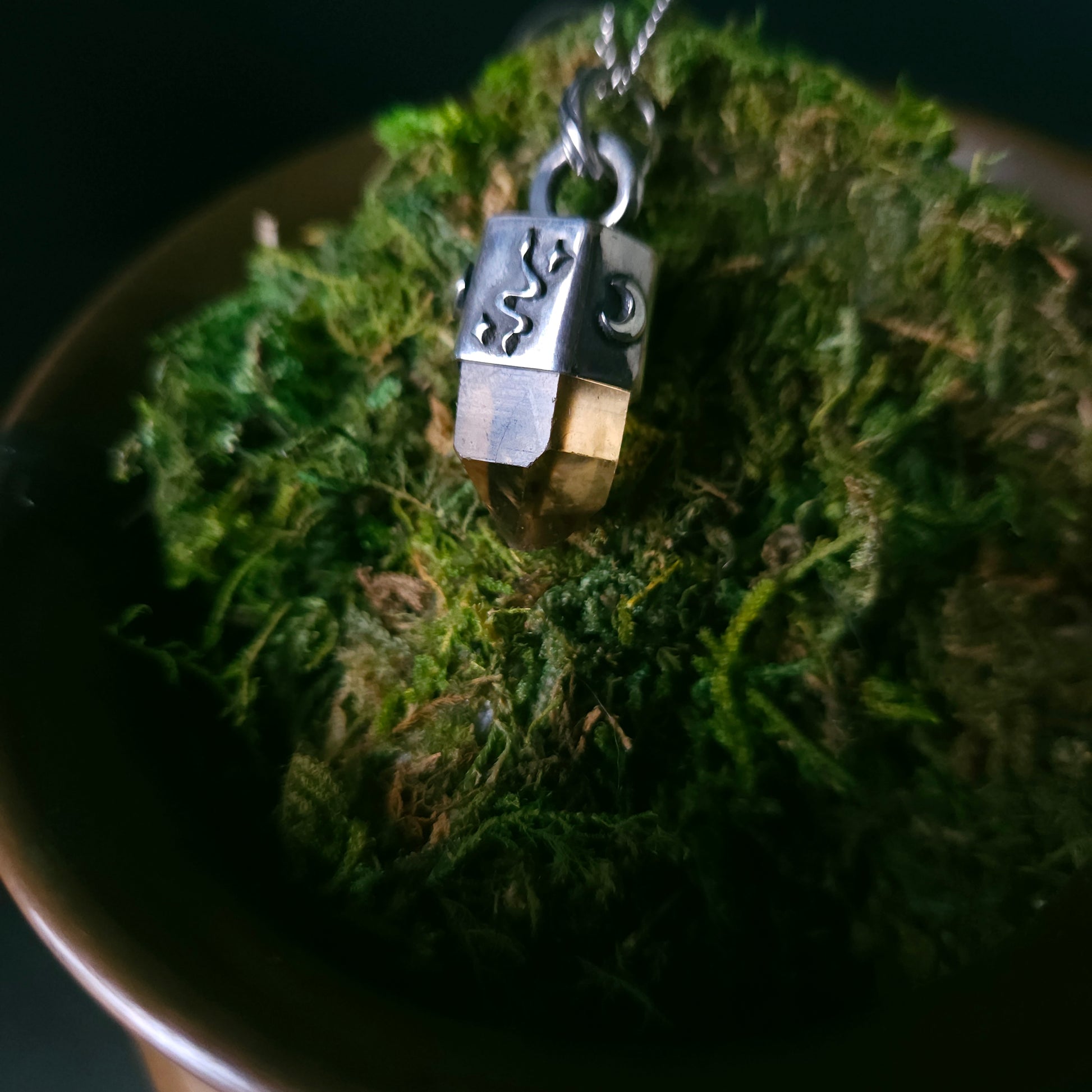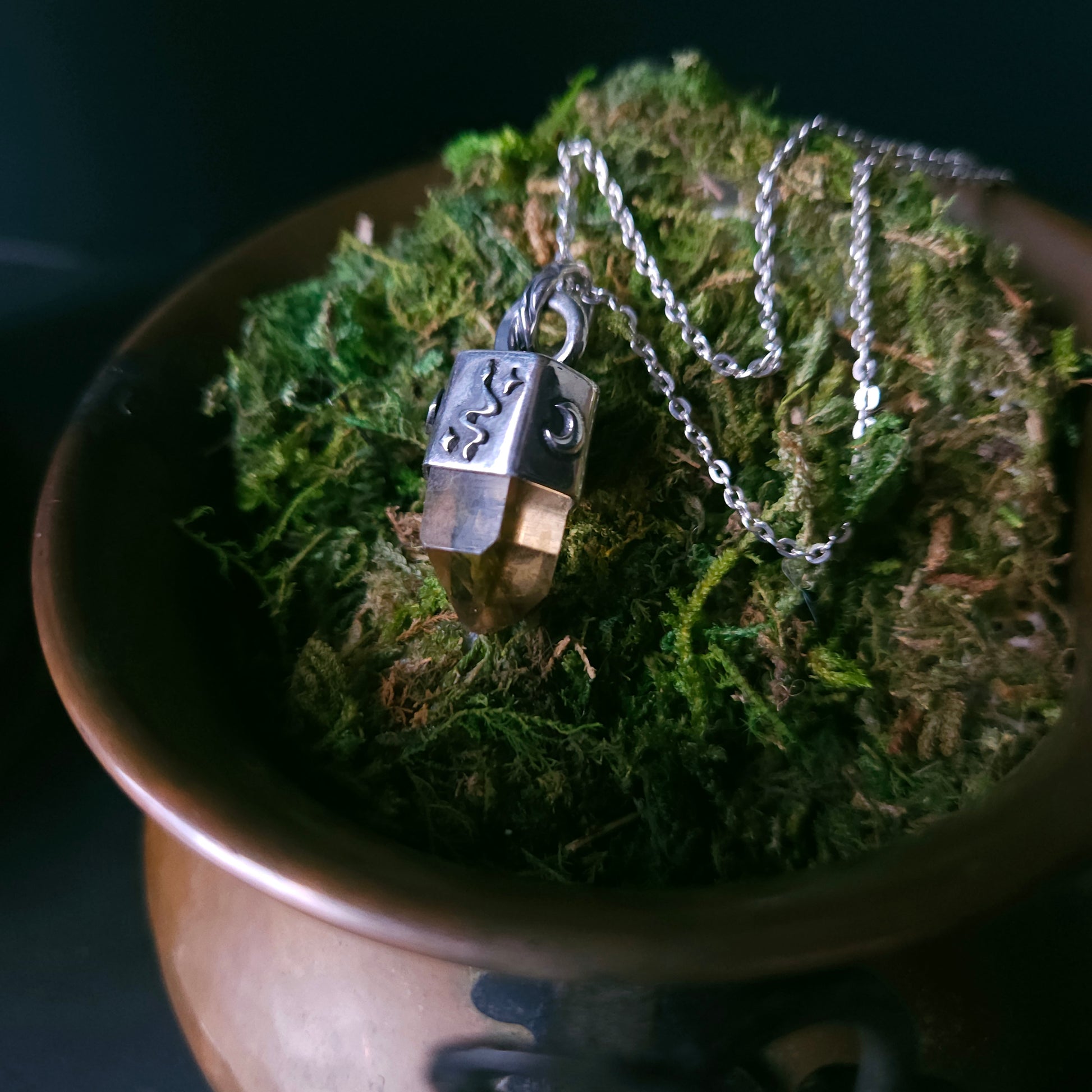 Ce collier est un talisman solaire : une pointe brute de citrine naturelle, symbole de lumière, de vitalité et d’énergie créatrice, sertie dans un argent poli brillant.